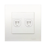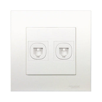 Vivace Telephone socket with shutter by Schneider electric. The device is with 2 gang. This device is designed to be flush mounted. The dimensions of the product is (W) 87mm x (H) 87mmx (D) 35mm. The embedding depth is 28mm. It is made of Polycarbonate (PC). The color of the product is white with glossy surface finish. The Ambient air temperature for operation is from -5ÁC up to +40ÁC and the relative humidity is from 0% to 95%. It reaches an IP20 degree of protection. The Vivace switch and socket set is a robustly constructed range built to perfectly complement the modern lifestyle. A slim, trim profile, pleasing to the eye, clean and refined Vivace switch and socket with geometrically balanced design, are available in white and aluminium silver colors. This device is compliant with the IEC 60670-1 standard.