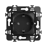 German standard connected sockets - 2P+E 16 A 250 Va.c. - It allows remote control of electric devices and also to monitor their consumption (instantaneous, daily, monthly). It is also possible to receive notifications that can be configured. Compatible with all the electric devices with power up to 16 A 3680W (with overload protection). Integrated with a 2-module support, it can be installed instead of an existing socket in a 40 mm deep box. Screw fixing and connection using automatic clamps It has a blue LED that lights up when the socket is ON and that can be configured by means of the Home + Control APP. It can be associated to one or more wireless light controls. Power supply 110-230 Va.c. - black