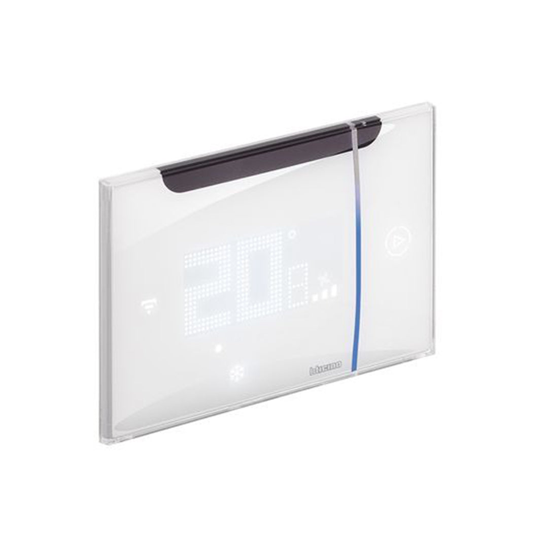 The Smarther AC with Netatmo connected thermostat, together with the Home + Control APP, is a device which allows to precisely and accurately adjust and monitor the temperature in the rooms; all the programming and most of the functions can be easily and intuitively performed using the App. Thanks to its Wi-Fi connection, Smarther AC can be programmed and controlled remotely; it can also display the temperature, fan speed and humidity measured in the room. The temperature level can be set locally for manual operation and Boost mode can be activated. The Boost forces the switching on of the system for a limited time (15, 30 or 45 minutes) irrespective of the measured and programmed temperature. Smarther AC with Netatmo can also be controlled with Google, Amazon Alexa and Apple Home Kit voice assistants. Main features: - Power supply 110 to 240 Vac , 50/60 Hz; - 2 W max absorption; - Maximum cable section 1 x 1.5 mm2; - Operating temperature 5 to 40 ÁC; - 1-switching contact output free of 5(2)A potential. - Type of operation 1BU - Pollution index 2 - Rated pulse voltage 4 kV - Wireless device in compliance with 802.11b/g/n standard, frequency 2.4 - 2.4835 GHz, transmission power < 20 dBm. WEP/WPA/WPA2 safety protocol IPv4. - Radio link: short range communication, frequency 868MHz/915MHz, transmission power < 25mW e.r.p. Types of installation: - flush mounted, on boxes item 503E or 500 (for item 500 use the wall dowels) - plasterboard, on boxes item PB503 and PB502. White colour.