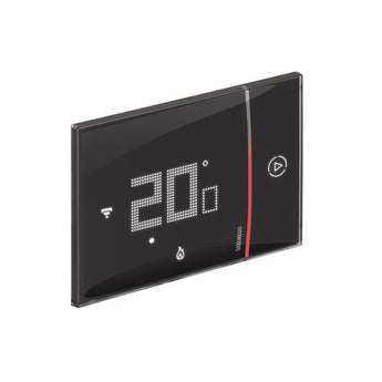 Smarther with Netatmo connected thermostat - black finish. Together with the dedicated HOME+CONTROL APP, it allows you to adjust and monitor the temperature in the rooms precisely and accurately; all the programming and most of the functions are performed simply and intuitively using the APP. Thanks to its Wi-Fi connection, Smarther with Netatmo can be programmed and controlled remotely; it can also display the temperature and humidity measured in the room.