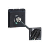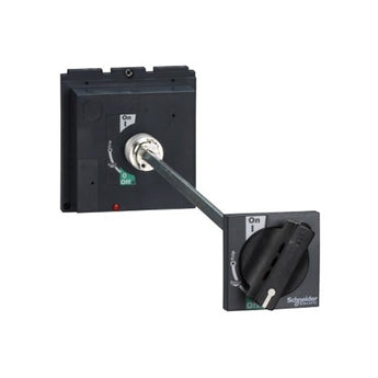 It is an extended rotary handle for Compact NSX 400/630, PowerPact Multistandard L frames and EasyPact CVS 400/630 devices. It is suitable for isolation and it is used for standard applications. It maintains the access to trip unit settings and to the push to trip button. It is equipped with a standard black handle. There is an indication of the three device positions O (OFF), I (ON) and tripped. This extended version makes possible to operate devices installed at back of switchboards, from the switchboard front. The distance between the back of the circuit breaker and the switchboard door is from 185mm to 600mm. The degrees of protection are IP55 and IK08. This rotary handle is padlockable in the OFF position using 1 to 3 padlocks not supplied (shackle diameter 5 to 8mm). As an option, it is possible to install a Ronis or Profalux keylock on the base of the handle to obtain the same function as with a padlock.