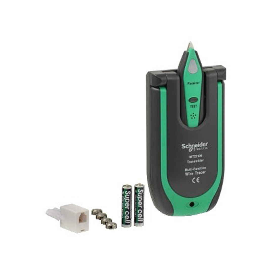 Compact hand-held instrument used for electricians to detect and track circuits into wall. Designed to generate a distinct tone in any unenergized wire or cable. This tone can be picked up with the tracker receiver. A LED acts as a visual indicator to show that the unit is on