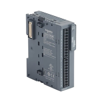 This product is part of the Modicon TM3 range, an offer of expansion I/O modules for Modicon M221, M241, M251 and M262. The analogue I/O module provides 4 inputs and 2 outputs with 11bit + sign and 12bit input resolution. It is an I/O module with a rated supply voltage of 24V DC, a current consumption of 45mA, 55mA at 5V DC via bus connector, 55mA, 100mA at 24V DC via external supply. This product is capable of controlling variable speed drives or any device equipped with a current or voltage input. There is an insulation between input and supply at 1500V AC, input and internal logic at 500V AC, output and supply at 1500V AC and output and internal logic at 500V AC. It is furnished with removable screw terminal for electrical connection with 3.18mm pitch adjustment for inputs and supply. It is an IP20 rated product. Its dimensions are 23.6mm (Width) x 70mm (Depth) x 90mm (Height). It weighs 0.11kg. This product is certified by CE. It meets EN/IEC 61131-2 and EN/IEC 61010-2-201 standards. This module is compatible with Modicon M262, Modicon M241, Modicon M251 and Modicon M221 logic controller. It supports top hat type TH35-15, top hat type TH35-7.5 rail conforming to IEC 60715 and plate or panel with fixing kit mount. Modicon TM3 expansion modules have been designed with a simple interlocking assembly mechanism. A bus expansion connector is used to distribute data and the power supply when assembling the Modicon TM3 modules with logic controllers. Boost the performance of your controller with the Modicon TM3 I/O system specially designed for the Modicon M221, M241 and M251 logic controllers.