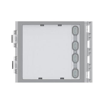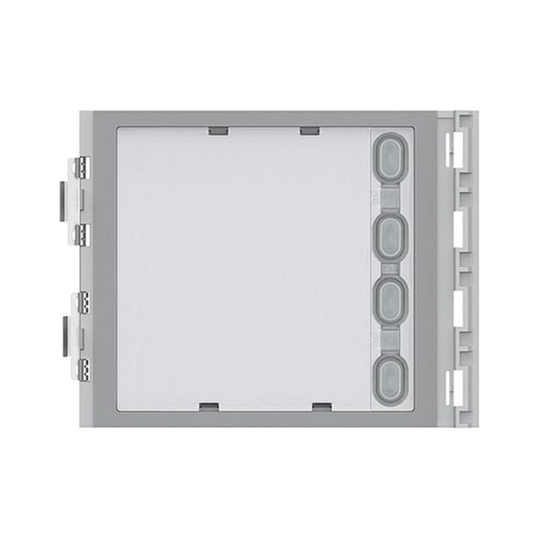 Sfera additional 4-pushbutton modules arranged on single column. To be used with speaker modules 351000 _ 351100 and audio/video modules 351200 - 351300. Connection by the multicable supplied. Backlighting of nameplates controlled by the speaker module or the audio/video module connected. To be completed with surround plate.