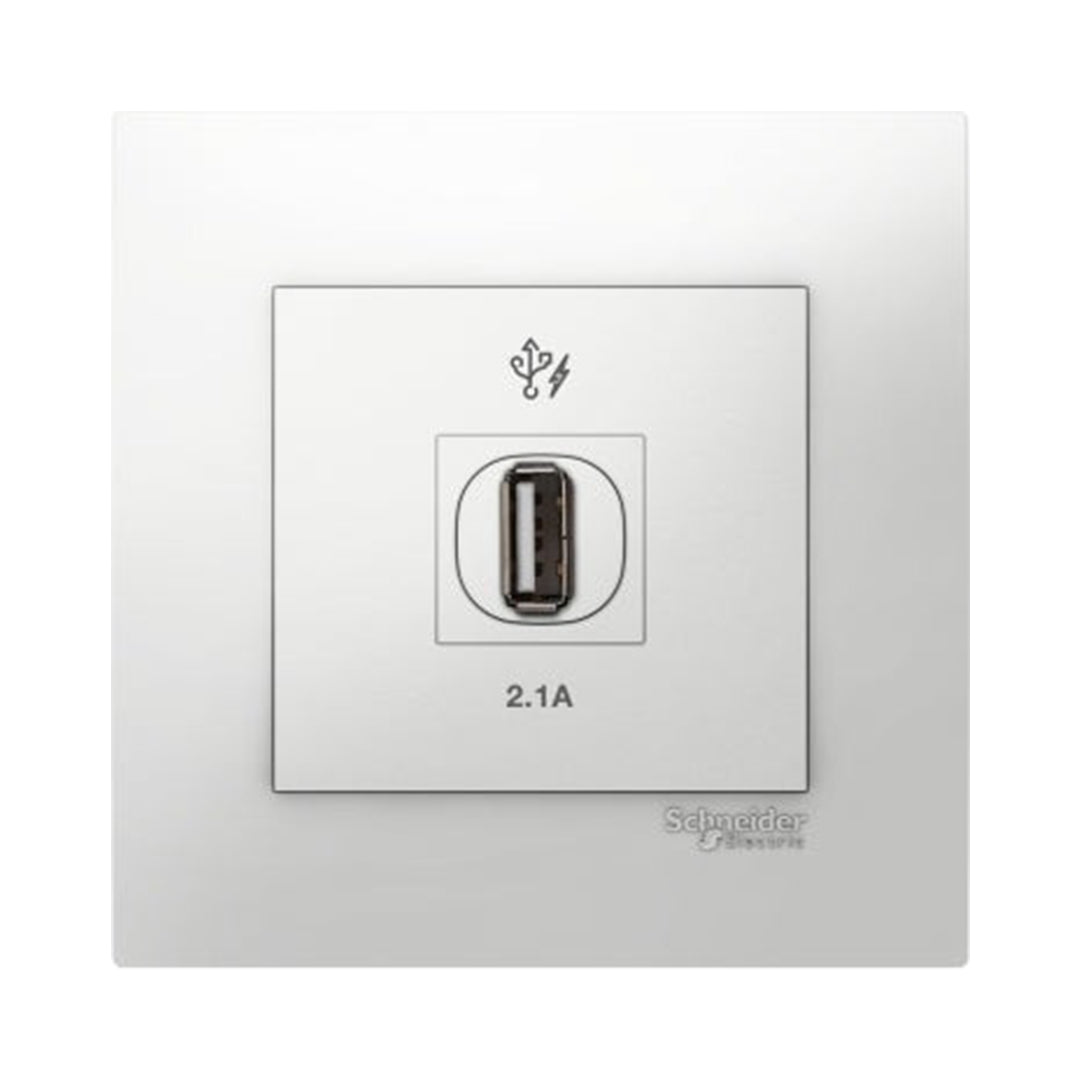 This Schneider Electric Vivace device is a USB charger 1 x 2.1A white. This device is compatible with HTC. It has two 5VDC 3A USB type A+A. It has good wiring capacity for stranded cable with 2.5 sq.mm cable cross section. The wire stripping length is 6 mm. Its Ue operating voltage of 100/240VAC and rated current of 2.1A with 50/60Hz. This device enables flush mounting. The dimensions are (W) 87mm x (H) 87mm x (D) 37.1mm and embedding depth of 27.3mm. It weighs 71.2g. The color of this device is white silver with glossy finish. Its made of silicone rubber material. The storage temperature is from -5ÁC up to +60ÁC with 10% to 90% relative humidity. It reaches IP20 degrees of protection. The Vivace switch and socket set is a robustly constructed range built to perfectly complement the modern lifestyle. A slim, trim profile, pleasing to the eye, clean and refined Vivace switch and socket with geometrically balanced design, are available in white and aluminium silver colors. This device is compliant with CCC certification.