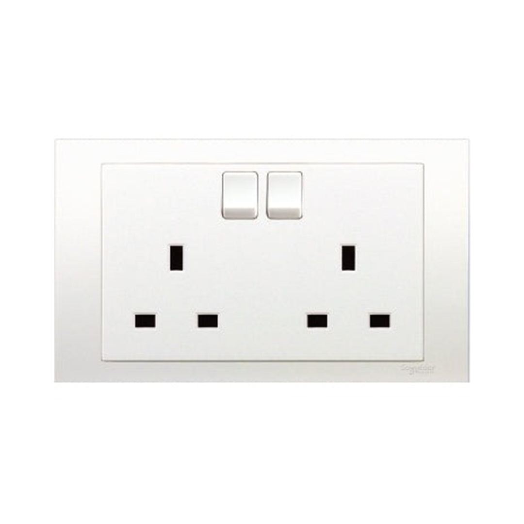 Vivace switched socket by Schneider electric is a complete 2P+E socket-outlet operated by means of Rocker/button. Its Ue rated operational voltage is 250VAC at 50 Hz. Its Ie rated operational current is 13A. This device is designed to be flush mounted. The dimensions of the product are (W) 147mm x (H) 87mm x (D) 35mm. It is made of Polycarbonate (PC). The color of the product is white with glossy surface finish. The Ambient air temperature for operation is from -5ÁC up to +40ÁC and Relative Humidity is from 0% to 95%. It reaches IP20 degree of protection.