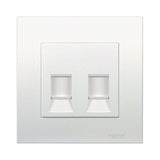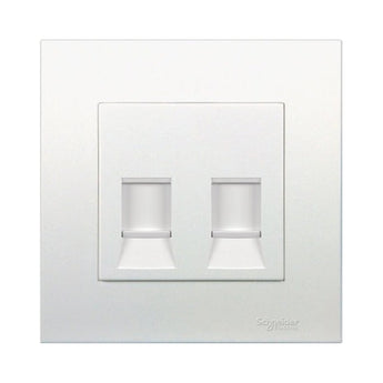 This Vivace two gangs data socket applies RJ45 Cat6 UTP connectors It has shutter on the coverplate to prevent dust ingress and foreign object insertion Connector PIN designations follow TIA/EIA 568 standard The socket comes in white color